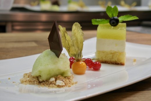 Beim Überraschungsmenu, das wir nur abends servieren, können Sie zwischen 3 bis 6 Gängen wählen: Vorspeise, Suppe, Zwischengang, Hauptgang, Käse und Dessert ...